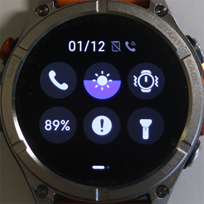Свайп от циферблата вниз - область быстрых переключателей.