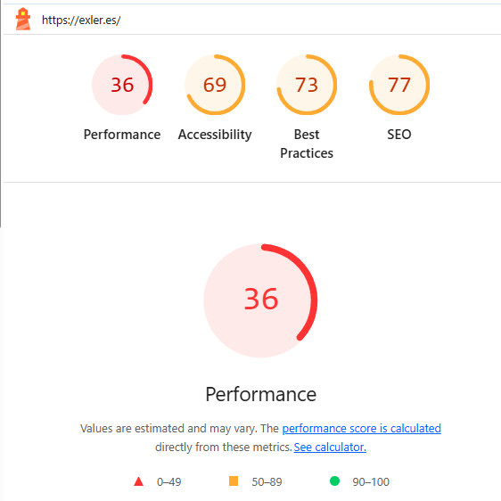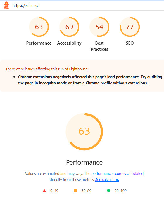 Обычное подключение - анализ загрузки сайта exler.es инструментом Lighthouse в Chrome.
