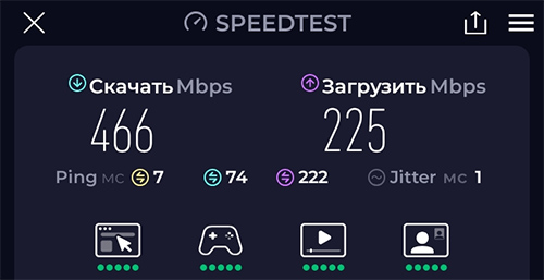 Давайте измерим скорость канала - смартфон подключен по Wi-Fi, у него скорости ниже, чем у ПК.