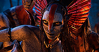 По поводу племени огнепоклонников с предводительницей Варанг. Некоторые критики прямо-таки приходят в восторг от того, что это племя воюют с другими племенами на'ви. Видите, говорят критики, Кэмерон показал совершенно новый внутривидовой конфликт! Это новое слово в науке и технике! Но я не понимаю - там же огромная планета. Там куча всяких племен, кланов и группировок. Понятное дело, что некоторые из них воюют друг с другом. Вон, семью Джейка и племя Меткайина приняло не слишком, скажем честно, дружелюбно.