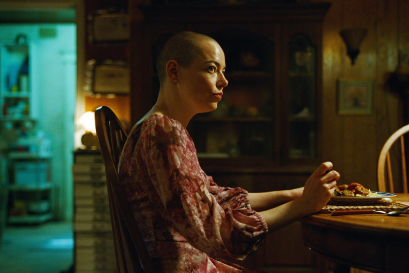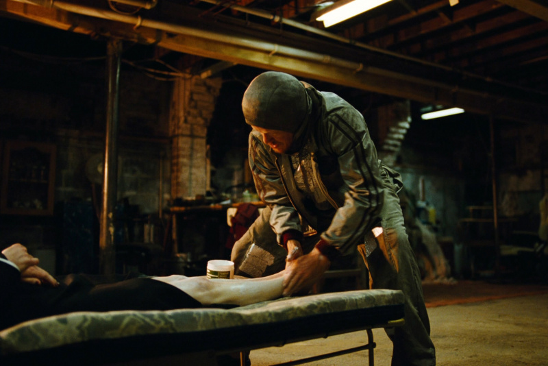 Несмотря на то, что в основном действие происходит в подвале дома Тедди, наблюдать за тем, как Мишель пытается обыграть Тедди, а тот фанатично следует своему плану - очень интересно. Лантимос любит использовать всякие сверхширокоугольные объективы вплоть до "рыбьего глаза", и если в "Фаворитке" меня настойчивость применения таких объективов раздражала, то здесь наоборот - это не только уместно, но и смотрится прямо-таки здорово.