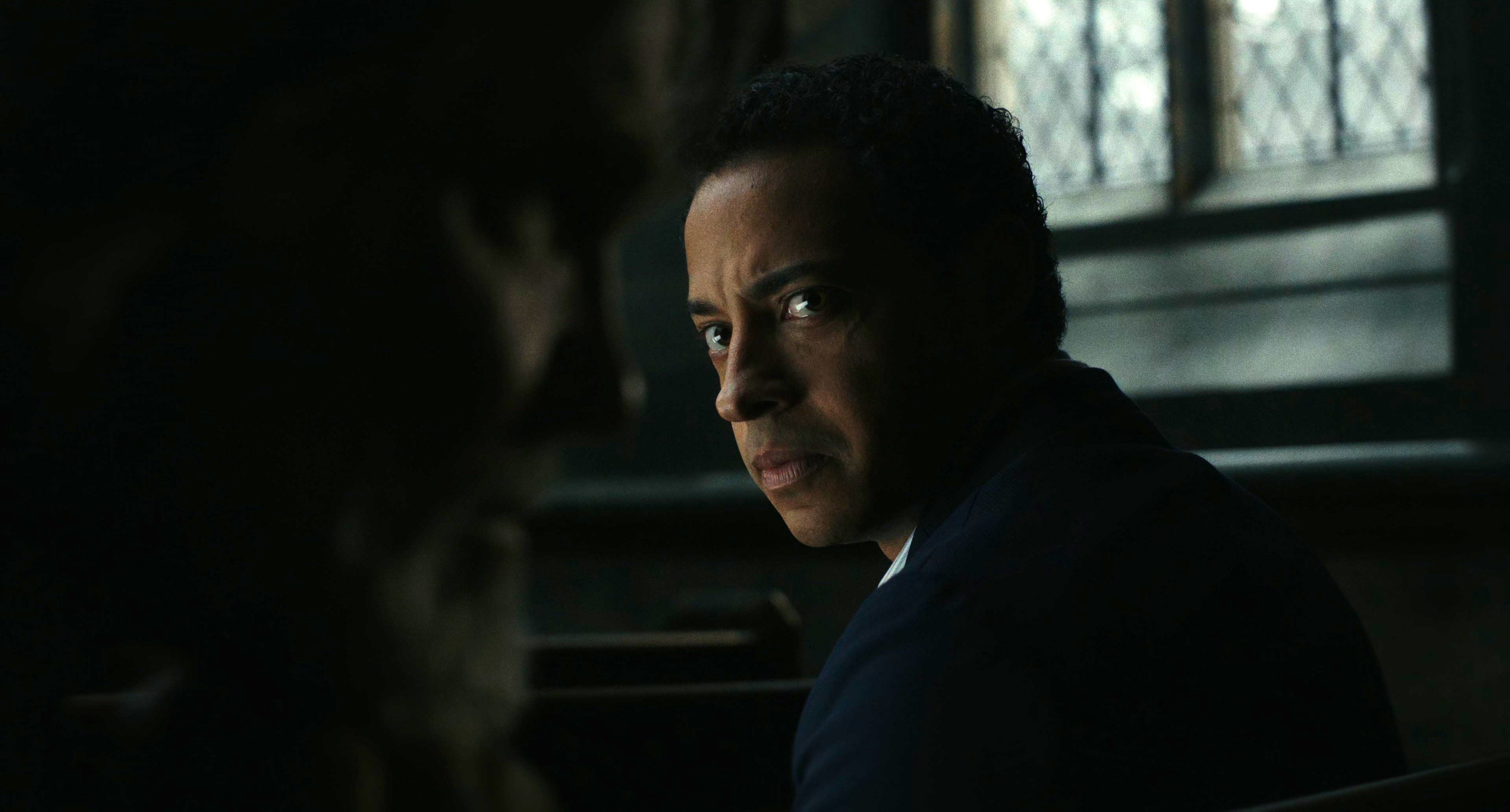 Первые сорок минут здесь идет история Джада и его служения в церкви Божьей Матери Неустанной Стойкости, где проповедует этот слегка (или даже не слегка) бесноватый монсеньор Уикс. И Джад вступает в прямой конфликт с Уиксом, ведь он парень реально боевой. И там челюсти монсеньора явно угрожала большая опасность, но все разрешилось радикальным образом: Уикса таинственно убили, и вот тут-то, ровно на сороковой минуте, в картине возник детектив Бенуа Бланк, слава богу.