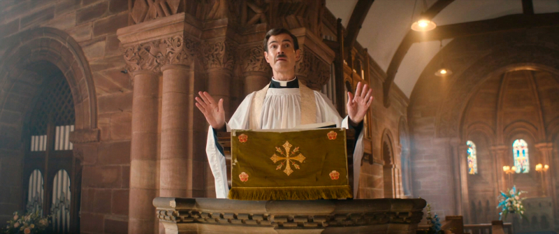 Сначала обаятельный мошенник Эрик с эрегированным членом в штатах (это он Роуз чай принес), потом свидетель Арчибальда с эрегированным (пикселированным) членом из штанов (это он пел песенку собравшемуся великосветскому обществу), а потом и вовсе очень трогательная романтическая сцена между Эриком и Роуз, в метре от которых писатель Джон Р. Р. Толкин, приехавший на свадьбу, испражнялся на унитазе с соответствующими звуками - да как бы меня не разорвало от такого тонкого британского юмора, подумал я.