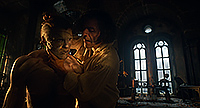 Визуально это все сделано очень здорово - Гильермо дель Торо умеет это как никто другой. При съемке он практически не использовал зеленые задники и компьютерную графику, все декорации возводились по старинке, это хорошо видно и производит большое впечатление. Там даже корабль, на котором происходит не так много действия, построили в натуральную величину, а уж башня-лаборатория Франкенштейна - это фактически визуальный шедевр.