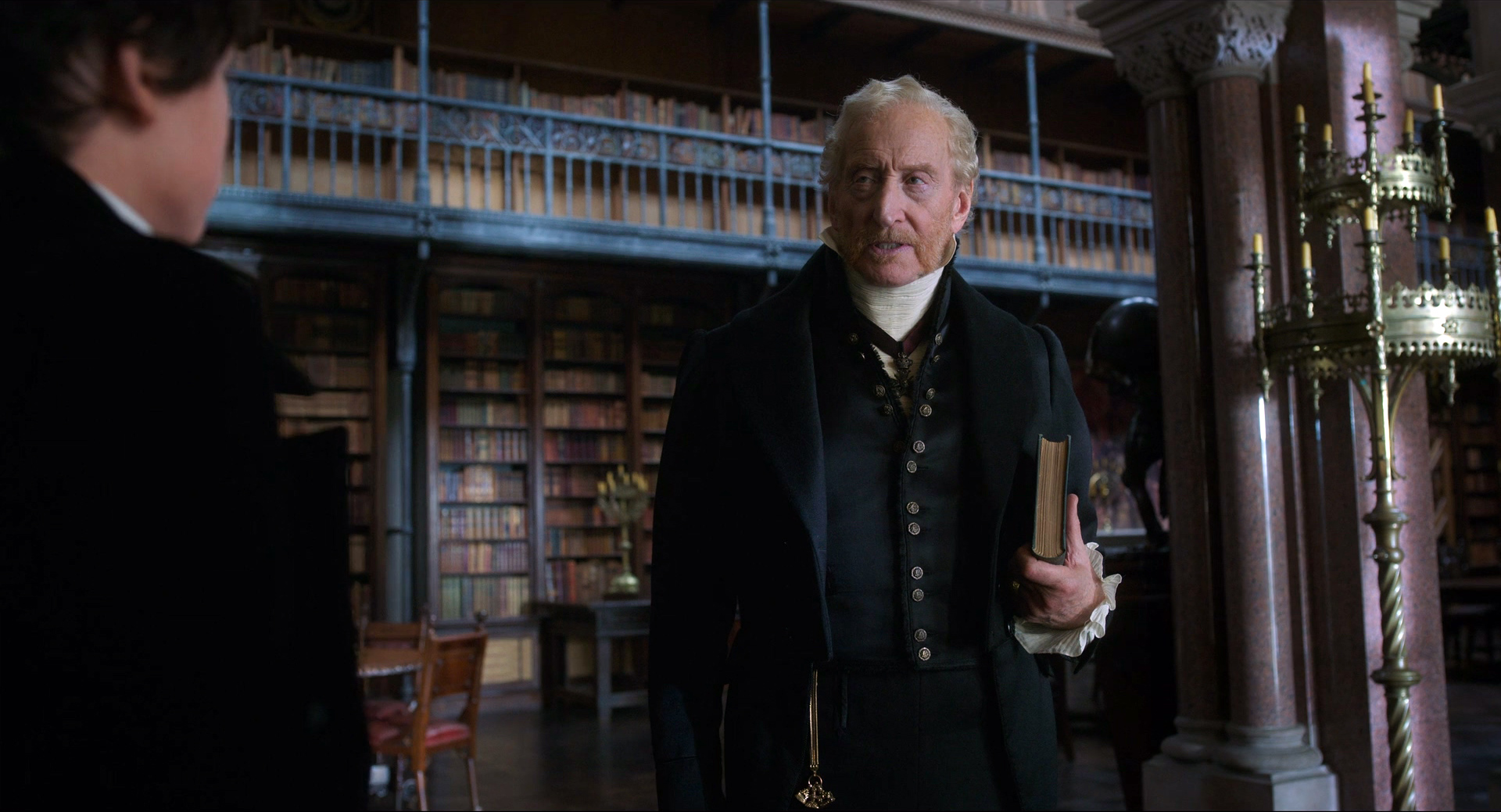 У Кристофа Вальца тут достаточно небольшая роль этого оружейного промышленника, который спонсирует эксперименты Франкенштейна в своих собственных интересах. В книге, насколько я помню, этого персонажа нет вообще, но здесь и действие из конца XVII - начала XIX века перенесено в начало XX века, Первую мировую: видимо, режиссеру было важно показать, что Существо создано именно из тел солдат, павших на поле битвы - эдакая коллективная военная травма. Из этого, видимо, и возник производитель оружия, который страшно разбогател на военных поставках.