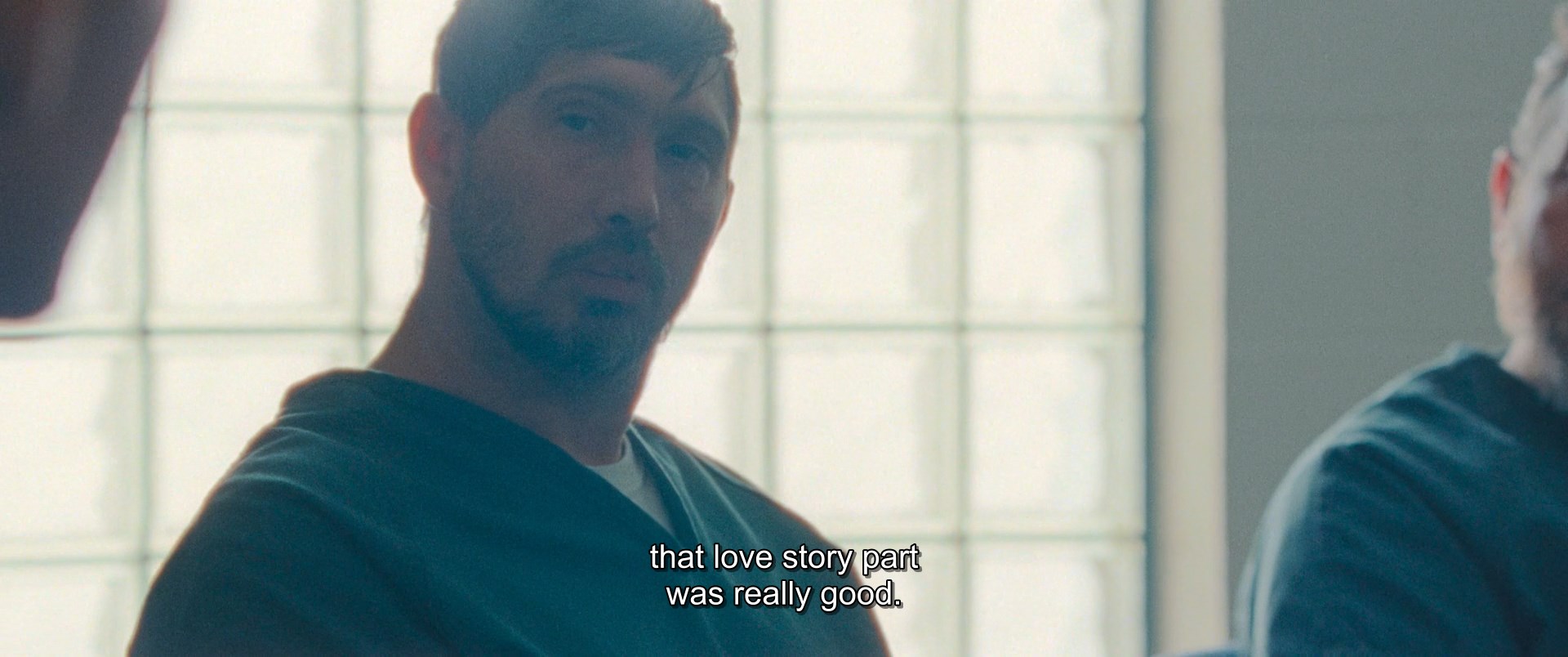 Кажется это сам Джеффри Манчестер - кадр из эпизода в конце фильма (1:56:10), где главный герой рассказывает другим зэкам свою историю.