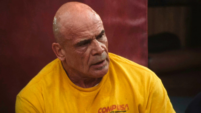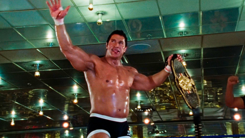 Марк Керр помогает Дуэйну Джонсону готовиться к роли. (В реальности Джонсон всего на четыре года младше Керра, а в фильме играет его тридцатилетнего, но мы не будем к этому придираться, не в этом дело.)