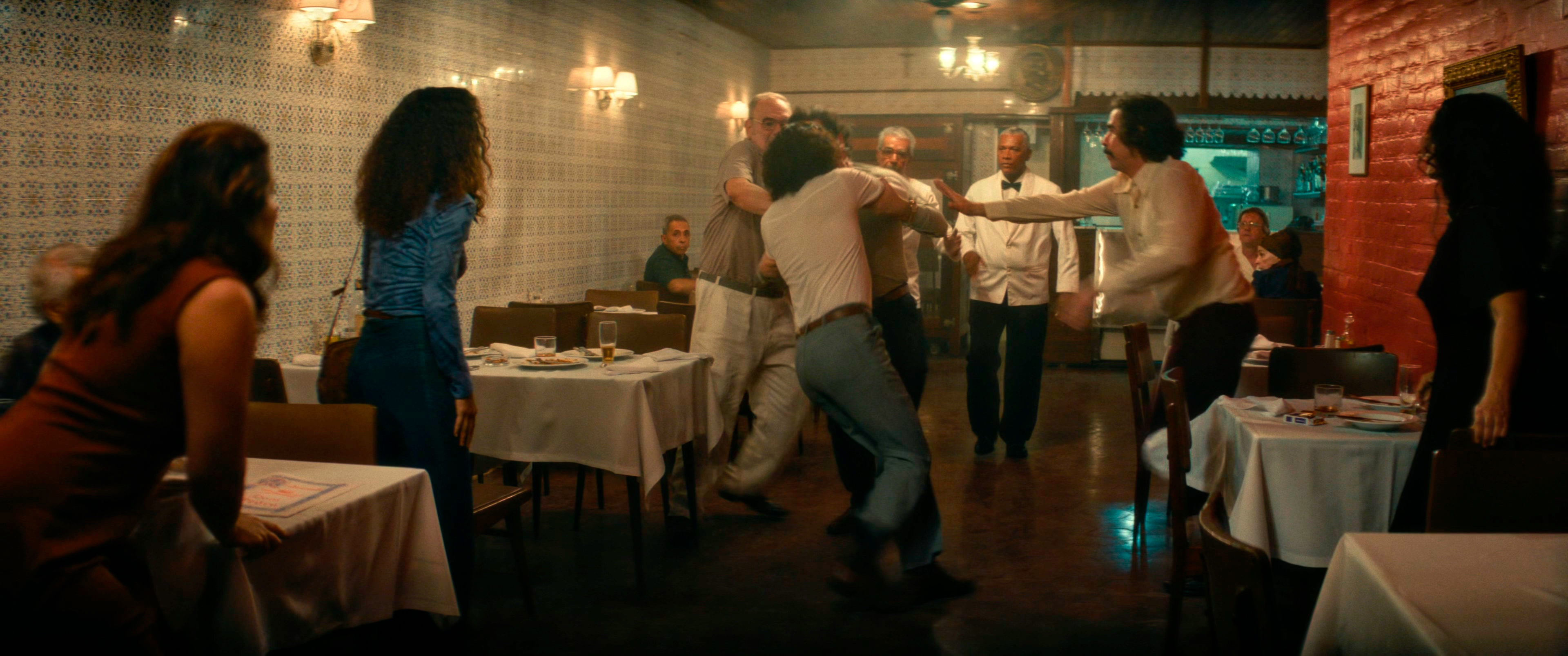 Но это такой сознательно выбранный прием: для Мендонсы главное - сделать так, чтобы зрители постепенно погрузились в обстановку тех лет и прочувствовали ее, и это сделано с большим мастерством. Мендонса, разумеется, хорошо знает эту эпоху и помнит ее досконально, и он это все воссоздает на экране - цвет, декорации, антураж, стиль съемки и стиль постановки - все на это работает, и это, скажу честно, производит очень серьезное впечатление, особенно если понимать, что вы, вообще говоря, смотрите.