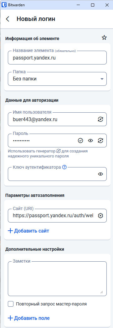 Кстати, в Bitwarden (как, впрочем, и во многих других менеджерах паролей) можно безопасно сохранять не только логины-пароли, но и, например, данные банковских карт, всякие личные данные (имя и фамилию, различные адреса и так далее) и заметки, которые не следует хранить в открытом виде.